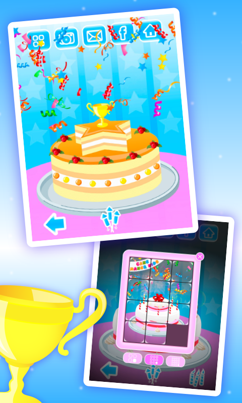 Cake Maker Kids allows you to create a cake for any occasion. If you want to make a cake for someone’s birthday, your friend's wedding, or maybe to surprise your valentine sweetheart or just to brighten someone’s day, then Cake Maker Kids is the app for you.