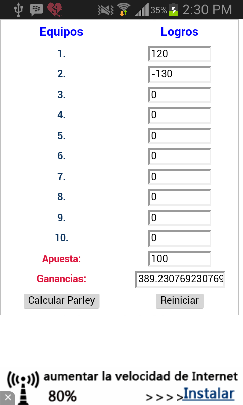 Dale "Reiniciar" para volver a empezar.With our calculator you can easily determine which will be your earnings in your betting parley, you only need to follow the instructions below: