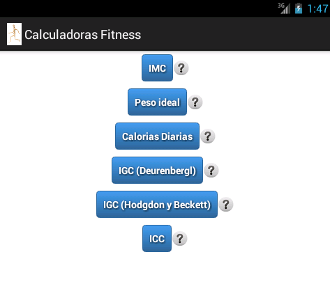•ICC: Te calcula el índice cíntura/cadera y te dice el tipo de forma que tiene tu cuerpo según tu sexo y la circunferencia de la cintura y la cadera.
