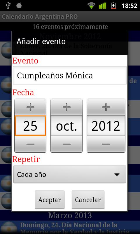 *** Podrás añadir los días que desees a esta lista de feriados, por ejemplo, cumpleaños, aniversarios, vacaciones, etc... para que también seas avisado cuando se aproximen esas fechas.