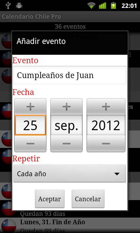 *** Podrás añadir los días que desees a esta lista de feriados, por ejemplo, cumpleaños, aniversarios, vacaciones, etc... para que también seas avisado cuando se aproximen esas fechas.