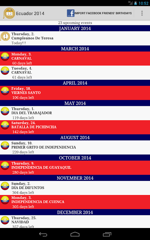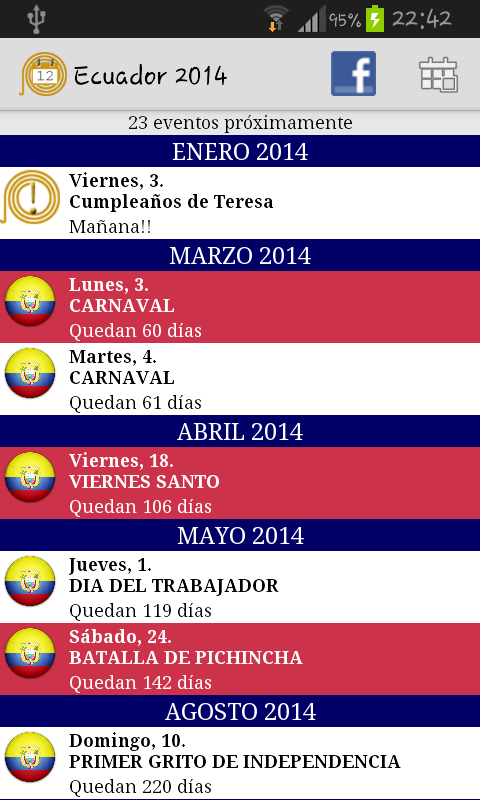 *** Esta aplicación se convertirá en tu nueva y más valiosa agenda.With this application you will know exactly the time remaining until the next holiday in Ecuador.