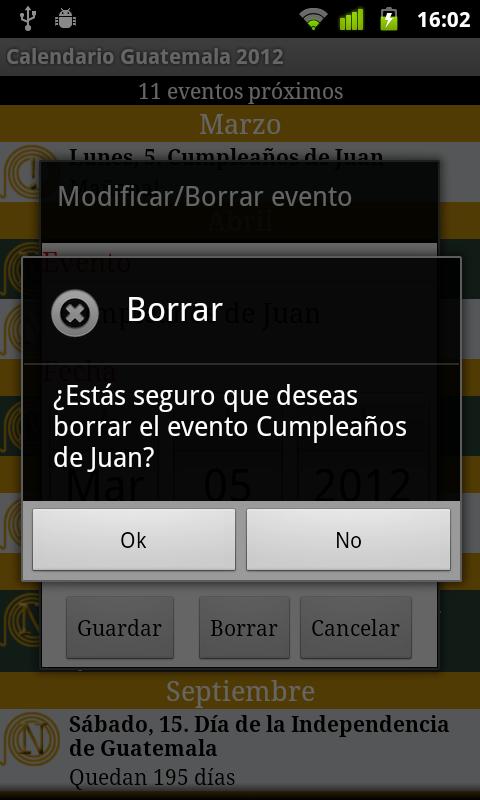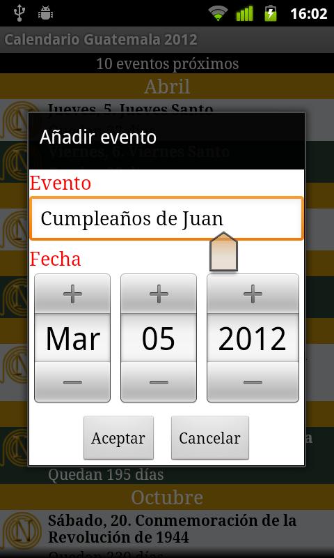 *** Podrás añadir los días que desees a esta lista de feriados, por ejemplo, cumpleaños, aniversarios, vacaciones, etc... para que también seas avisado cuando se aproximen esas fechas.