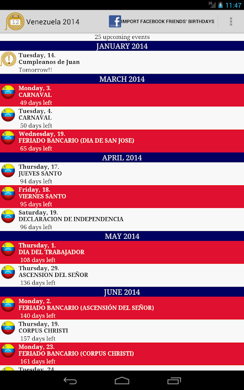 *** Esta aplicación se convertirá en tu nueva y más valiosa agenda.With this application you will know exactly the time remaining until the next holiday in Venezuela.