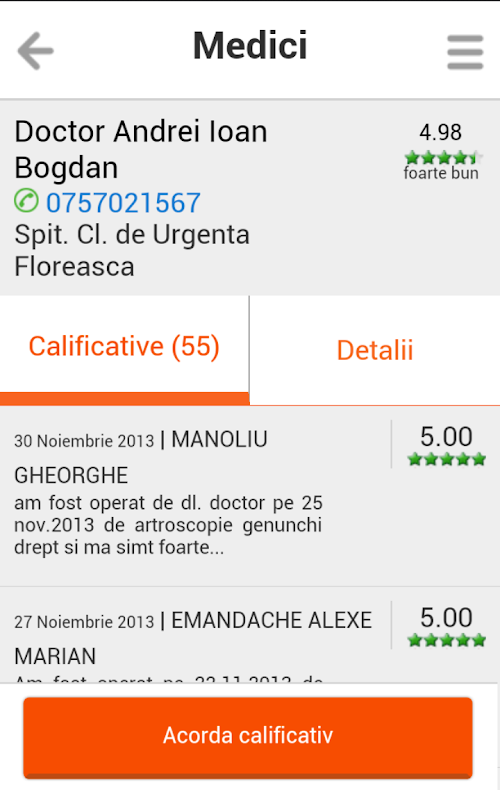 Gaseste cei mai buni medici, avocati sau profesori cu ajutorul calificativelor. Structurata pe profesii, aplicatia Calificative este locul unde iti poti exprima opinia si acorda calificative. Venim in sprijinul tau cu peste 350 000 calificative in alegerea celor mai buni profesionisti si a celor mai bune servicii.