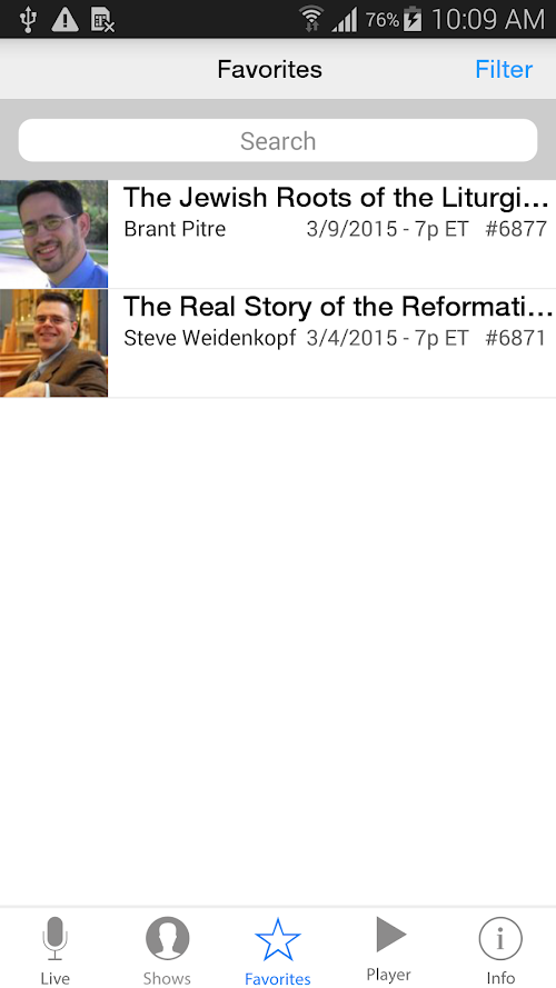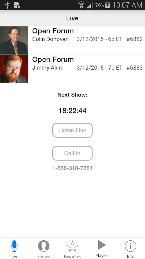 - Listen to live and archived shows