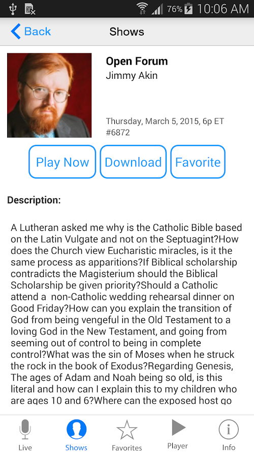 As a call-in program, Catholic Answers Live connects listeners to prominent leaders in the Church today—including scholars, nuns, priests, bishops, and cardinals—and touches on every aspect of our lives as Christians. You'll hear discussions on just about everything relating to the Church: doctrinal controversies, family concerns, social issues, evangelization, ethics…you name it!
