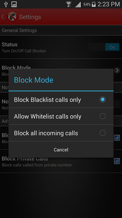 - Only allow incoming calls for numbers that are exist in the Whitelist, other numbers will be blocked.