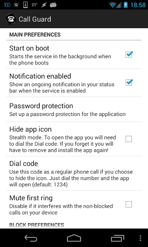 ✔ Stealth mode-hide the application icon,nobody will know there is a call blocker installed
