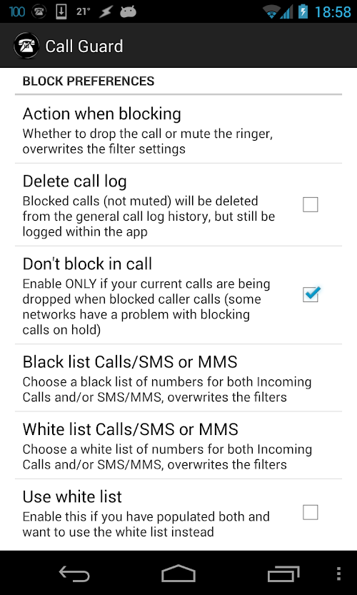 For all the info and features of this app have a look at Call Guard under "more by developer" or via the buy button inside this app.
