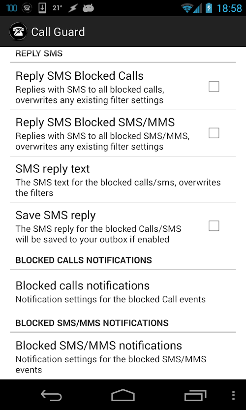 This version of Call Guard(call blocker & sms) Android App comes with one universal variant which will work on all the Android devices.