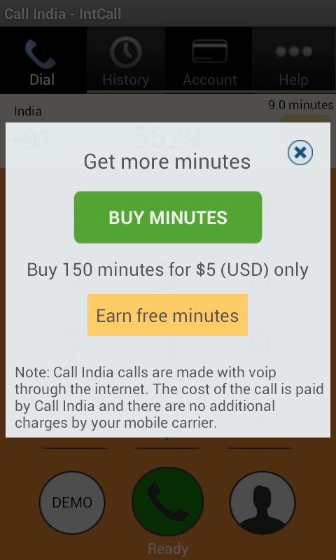Limited offer - New users get 5 minutes free to call India.