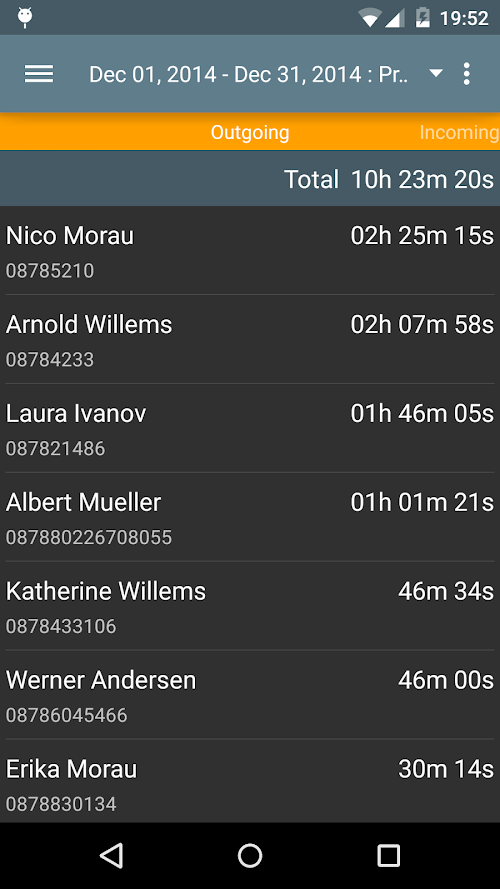It provides you with a better overview of your calls to keep track of overall call durations. Filters allow you to look at predefined and custom date ranges to find out how outgoing and incoming calls are distributed over time.