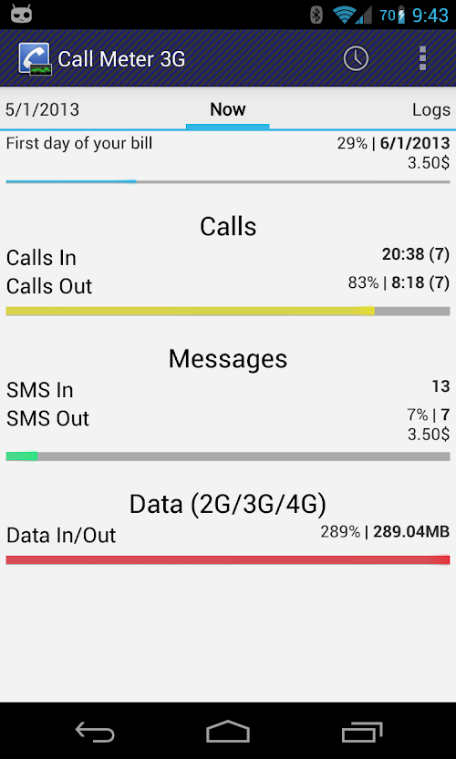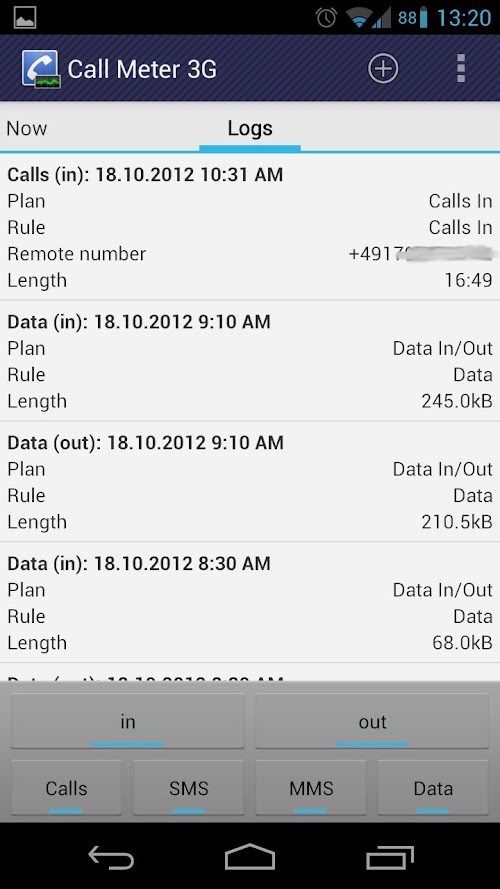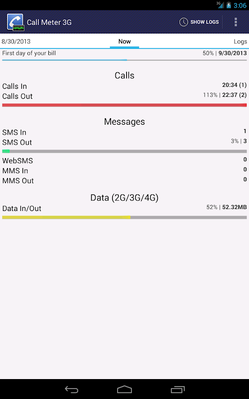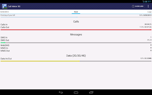 Call Meter 3G is the most complete monitor app for your Android device: It monitors your calls, text messages and data usage.