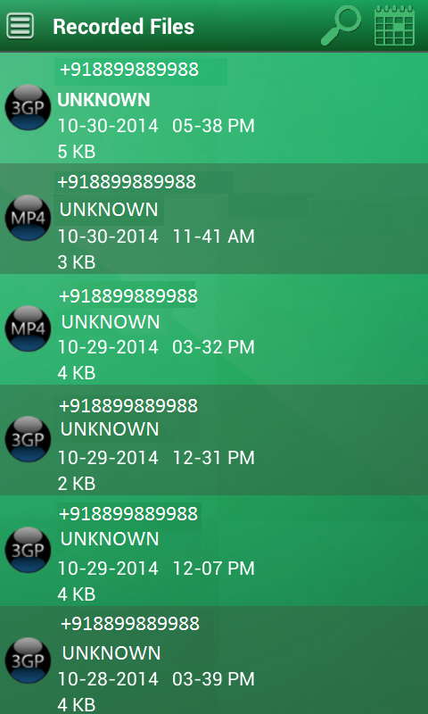 Calls can be recorded in three modes 1. All calls, 2. Record calls from selective numbers, 3. Ignore calls from selective numbers.