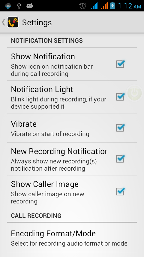 6. You can select WAV, 3GPP, MP4 or AMR audio encoding format, if MP3 recording not working properly on some devices.