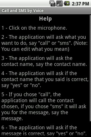 2 - The application will ask what you want to do, say "call" or "sms". (Note: You can edit what you mean)