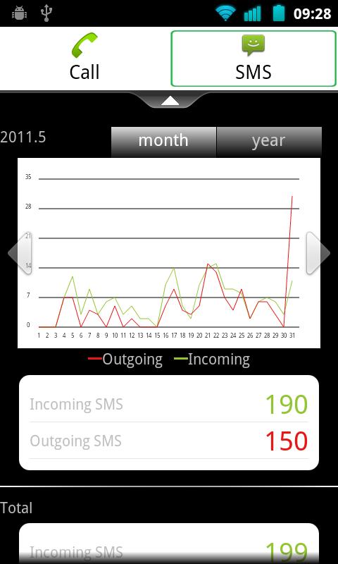 This app can analyse and check the statistics of SMS and Call log,Through the professional function of analysis and statistics in charts, you can get the detailed analysis of SMS and Call log, which is helpful with controlling cost.