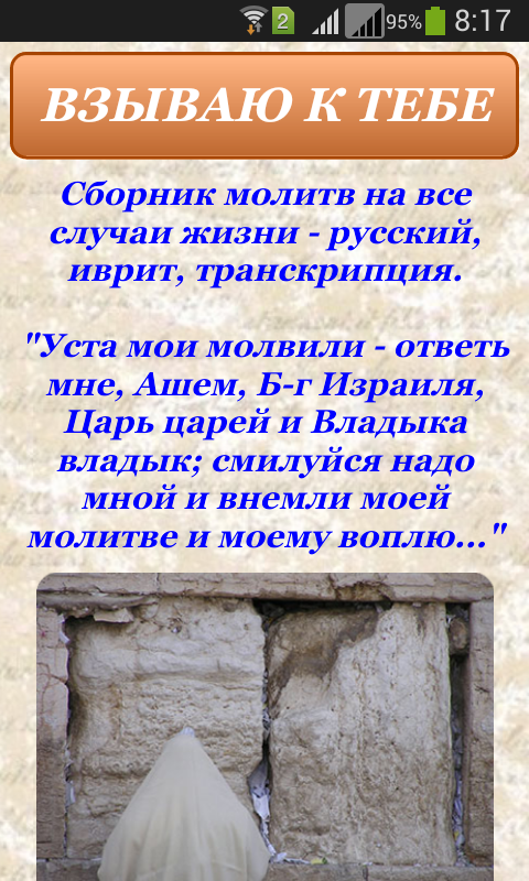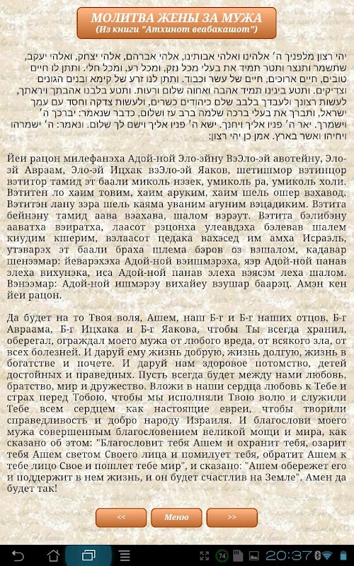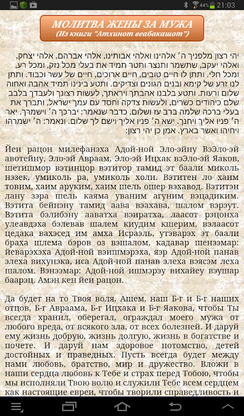 Anthology of Jewish prayers for all occasions in Hebrew, Russian and in transcription.