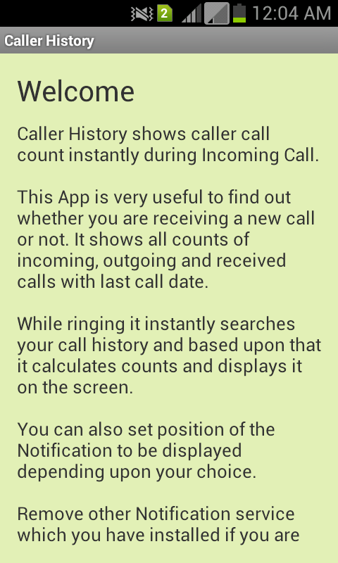 This App is very useful to find out whether you are receiving a new call or not. It shows all counts of incoming, outgoing and received calls with last call date.