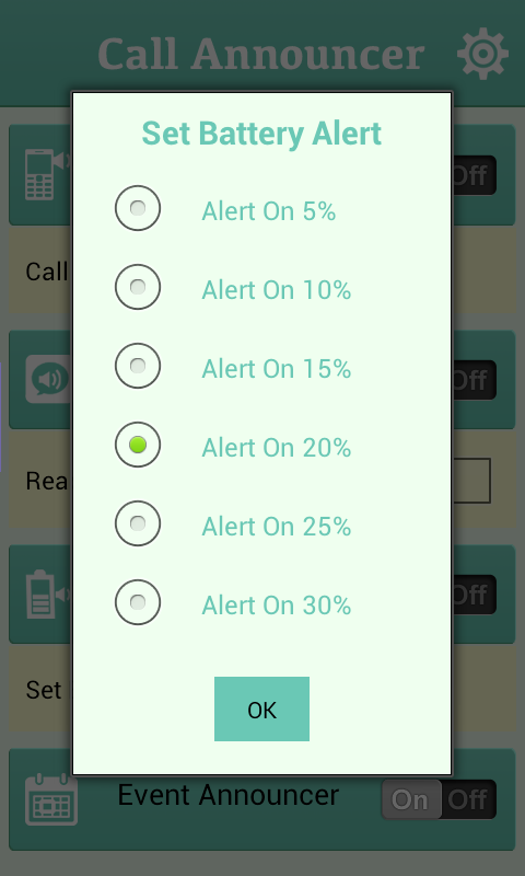 4. Speak/Announces Important Battery Alerts which you can set for various battery levels.