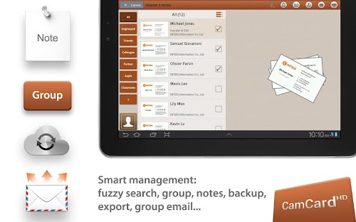 Use CamCard to save all business cards into your Android tablet, making it a portable card holder.
