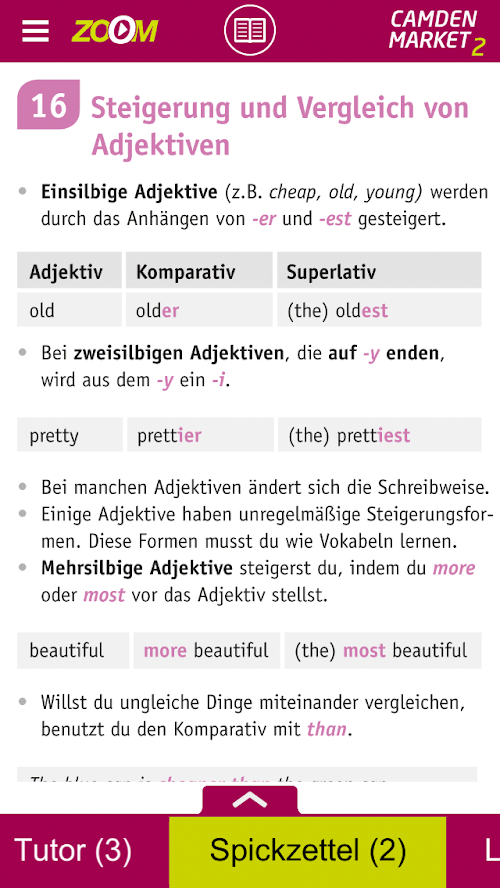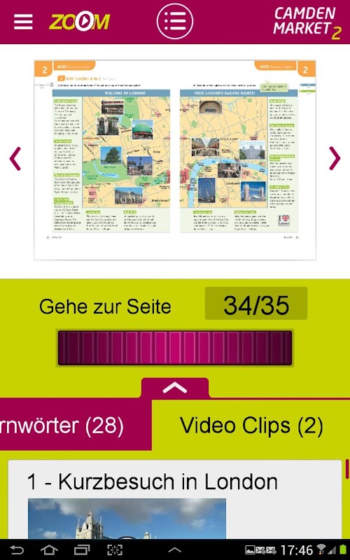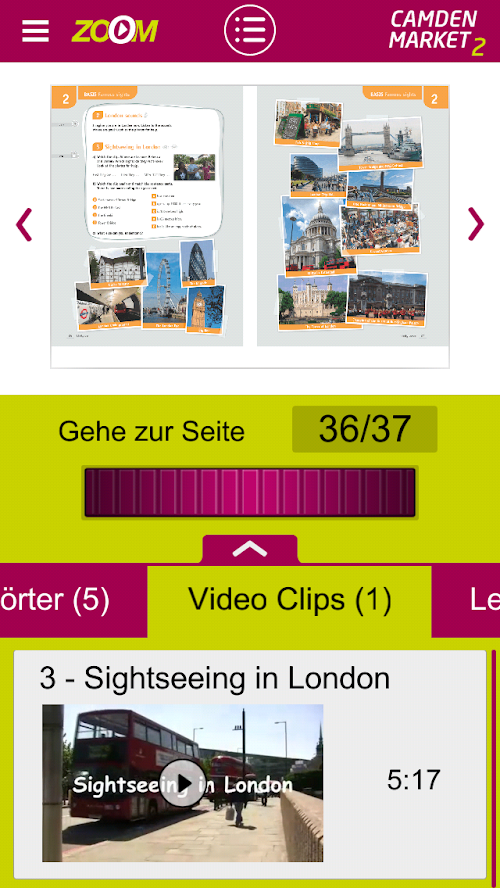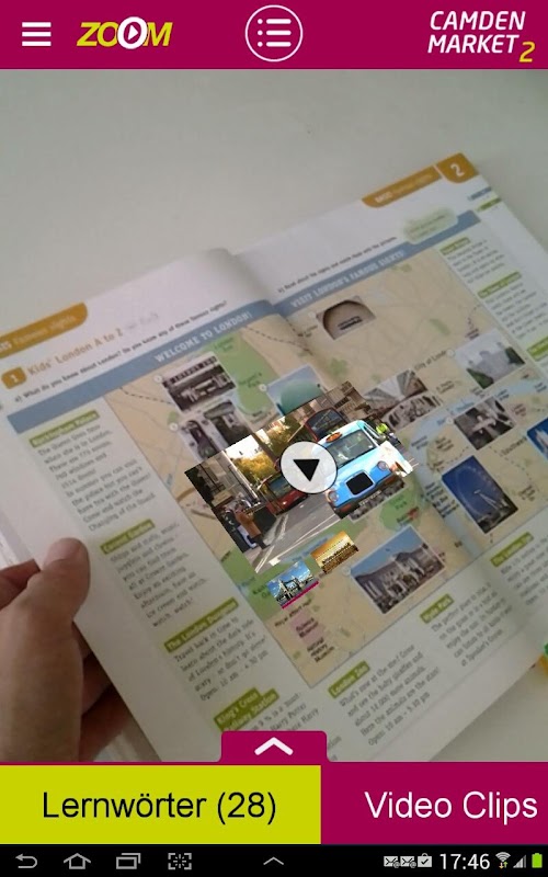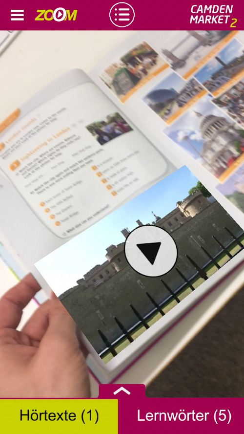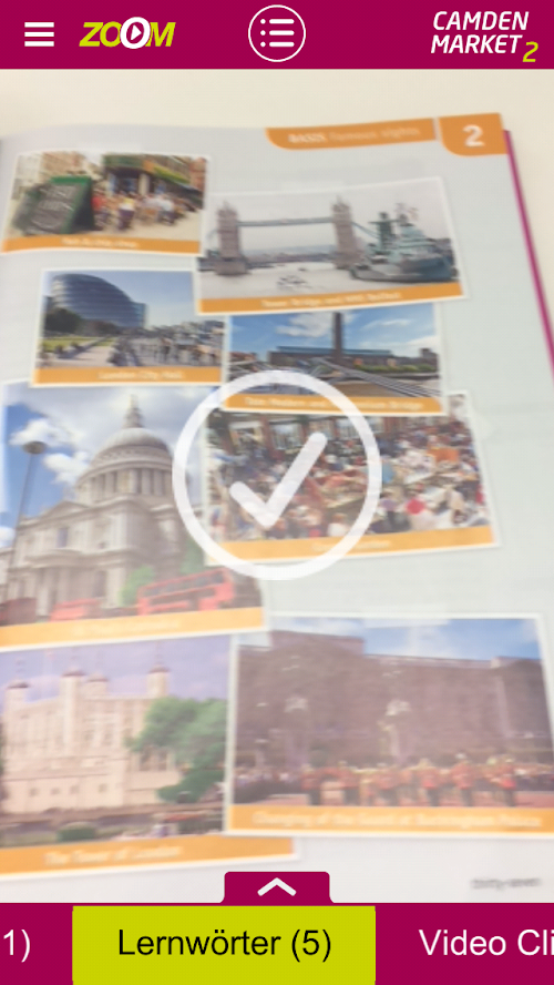 Bei Endgeräten ohne Autofokus-Funktion kann es zu Schwierigkeiten bei der Seitenerkennung kommen.With the Zoom app for English textbook "Camden Market" Learning becomes an event.