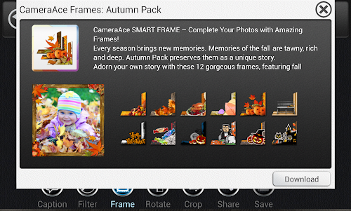 *** You need to have the "CameraAce" application (FREE) before using and installing the CameraAce Frames: Autumn Pack.***