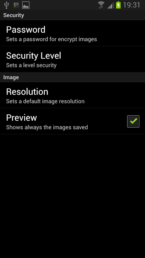 Simple operation. - Every picture you take is stored encrypted on the phone.