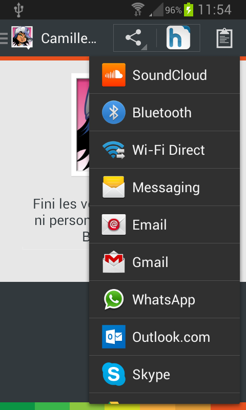 Share your messages from the Best-of-Vox application on your preferred social networks: SoundCloud, WhatsApp, Skype, hubiC, Evernote, Drive, etc.