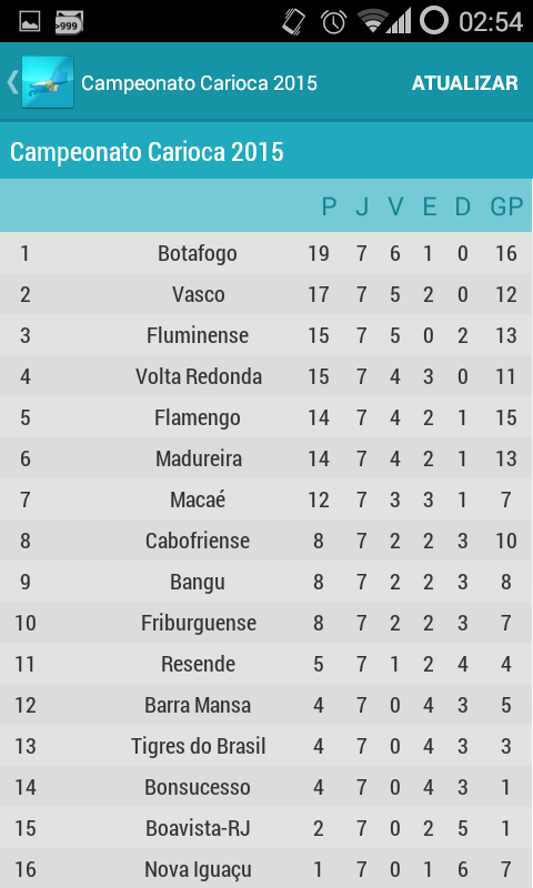 Atualização para o Campeonato Carioca 2016