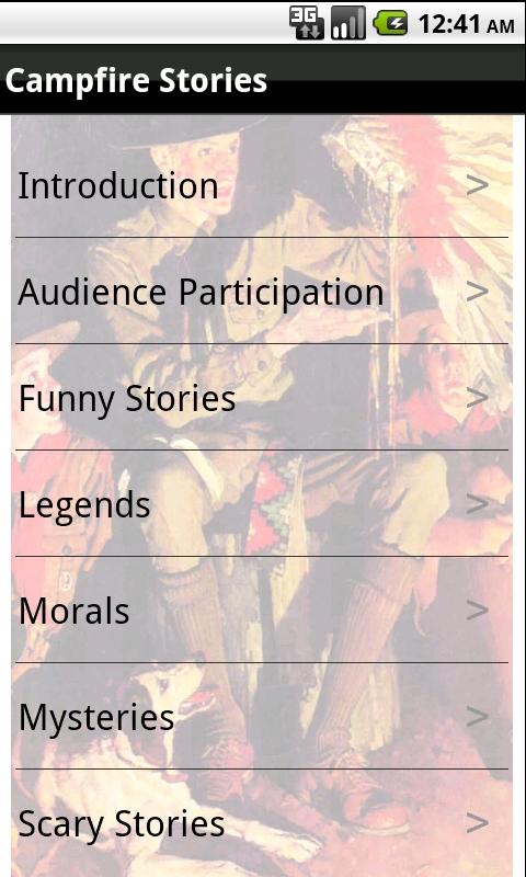 There are 10 sections in this application with more than 160 stories. From Shorts, to funny to scary to legends, there are stories with morals and deep points and stories with no point at all but to entertain. I you told one story per campfire and camped every month, it would still take you almost 14 years to get all the way through this application.