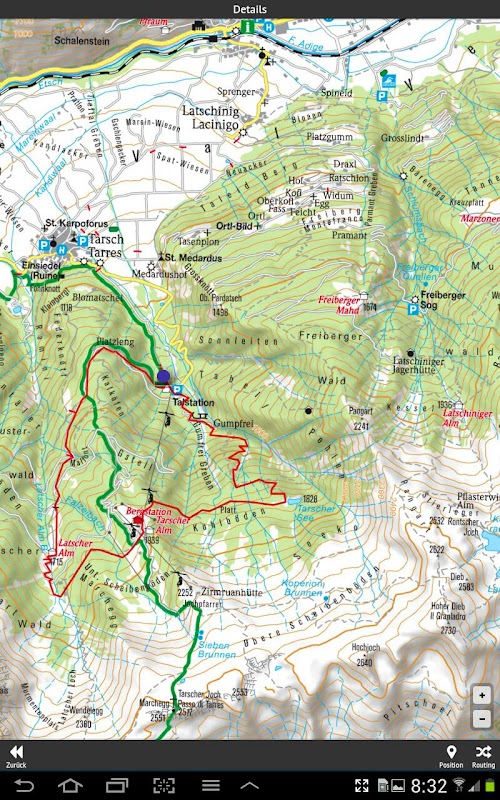 Ihre genaue Position wird Ihnen durch den GPS-Empfänger Ihres Gerätes punktgenau angezeigt (auch dies vollkommen offline!)The Alpe di Siusi is a term for their incomparable beauty in all of Central Europe. Covering an area of 6,800 hectares, the nature reserve Sciliar, the oldest stretches of South Tyrol.