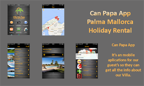 VILLA CAN PAPA Can Papa is a spacious house of some 300m2 built in the beautiful open countryside of Pollensa. It has been completely reformed to combine traditional and modern touches. This property is in a magnificent location surrounded by mountains in the area known as Almadrava, only 4 minutes from Pollensa old town. In this App you can find the latest information about Villa Can Papa. The content is dynamic and we always try to update it to offeryou only the best and most current information about a variety of subjectes! -Browse current news of Villa Can Papa -Learn about the latest Villa Can Papa events and offers! -Get useful informattion about the Villa and the area iin general. -Beaches / Restaurants / Golf course /and more... -Get directions to any place of intrest and more... Discover Villa Can Papa throught our App and make your vacation unforgetable! Other information: This App uses the device's location to show directions. Continued use of GPS running in the background can decrease battery life.