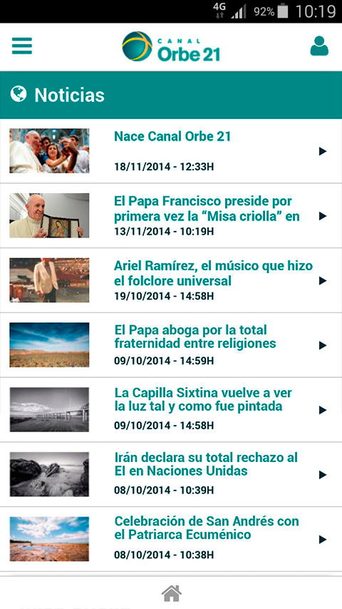 Through the application of Canal Orbe 21 can enjoy an audiovisual programming vocation of cultural and spiritual enrichment, which programs music, interviews, art, film and series are combined with live broadcasts of major liturgical events and religious taking place at national and international level.
