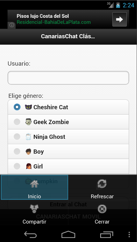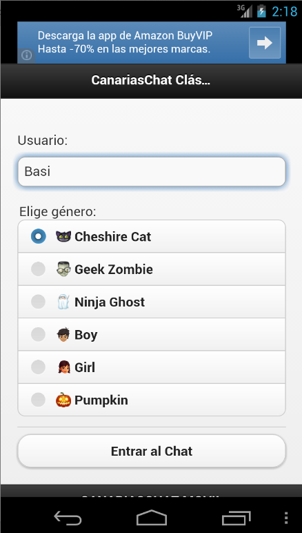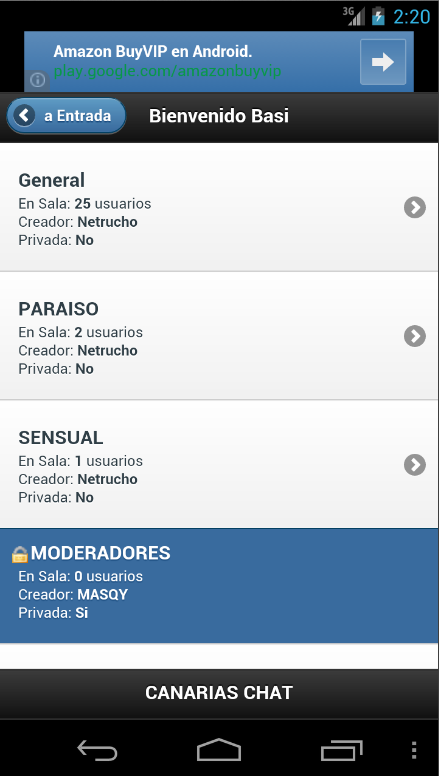 Aplicación que permite charlar en el chat clásico del Canarias Chat desde tu móvil.An application that lets you chat in chat classic Canary Chat from your mobile.