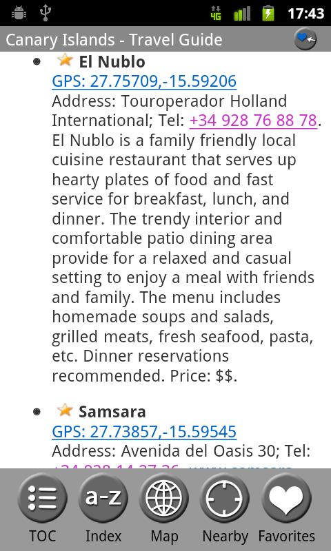 ✔ The top restaurants have been individually selected by MobileReference editors. These restaurants are marked by a star in the EAT chapter and are plotted on the GPS map.