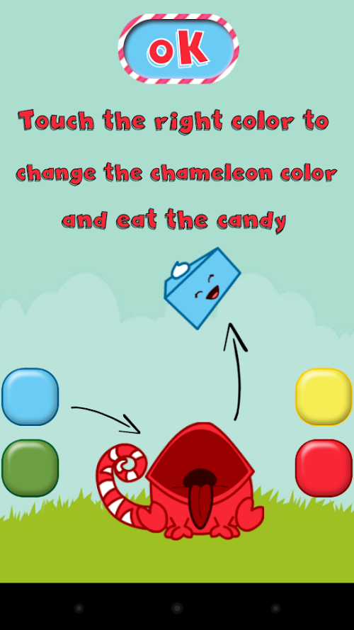 ►Candy is falling from the sky, and the Cham chameleon, is very hungry!