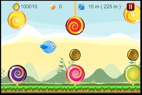 Candy Bird is a simple game to avoid the blocks and collect coins. This is similar to the popular game, flappy bird. Simply tab the screen to flap the bird to fly. The game speed will increase after every 40 meters of flying.