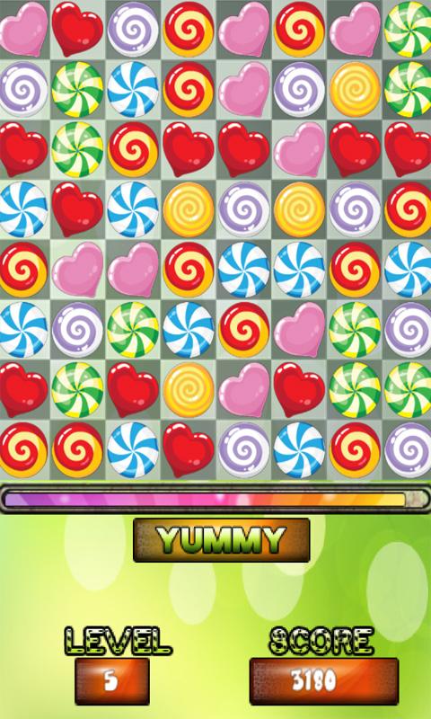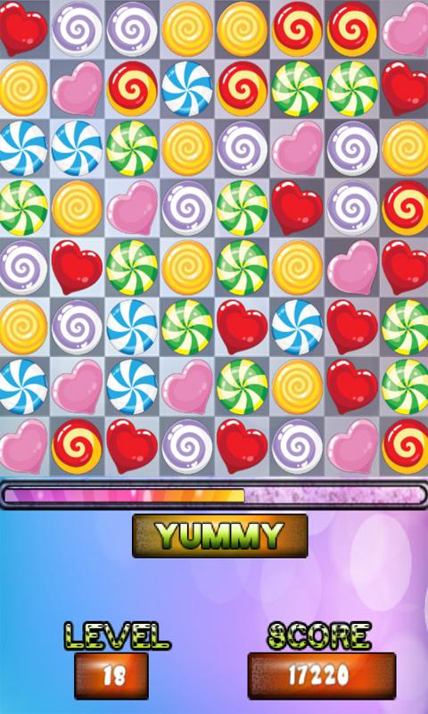 This all new flavor match-3 Candy game will sure give you a nice sugar buzz, so enjoy blasting through all these sweet levels filled with yummy & delicious candy jewels, be the master of the sugar land!