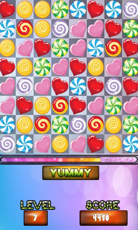-= Yummy button will help you when you’re stuck on a level, pressing it will automatically re-shuffle the candy diamonds on the screen.