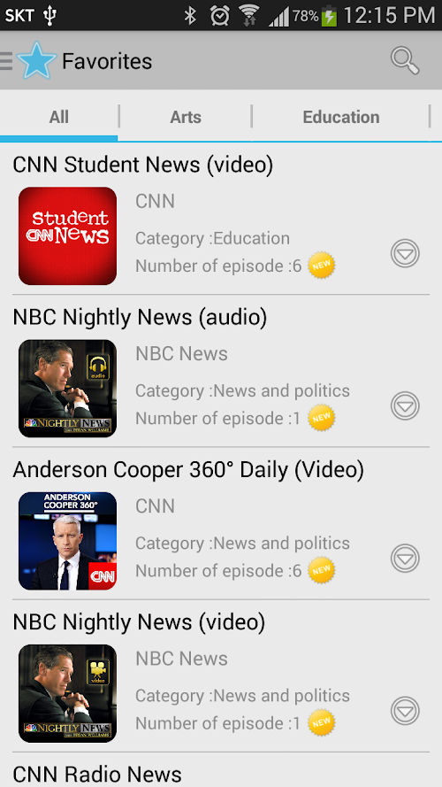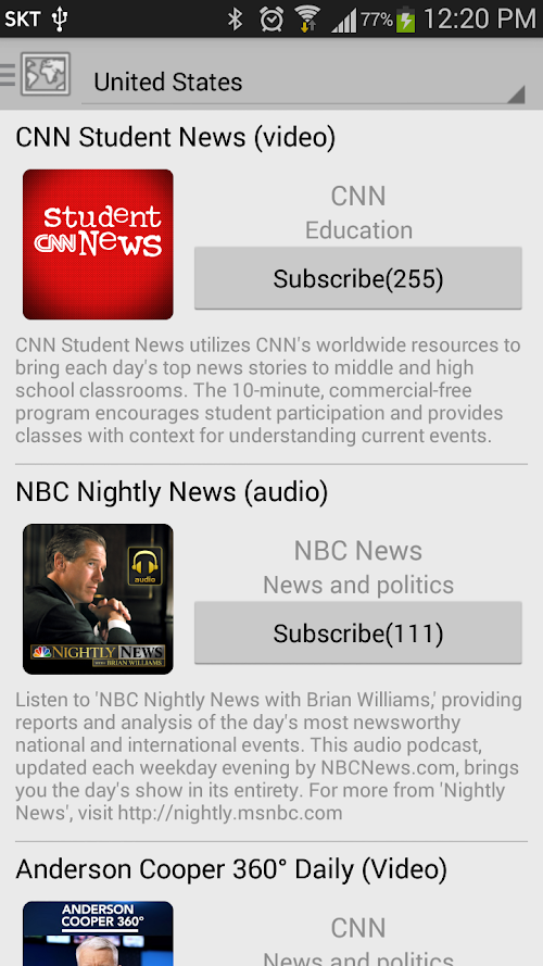 - You can easily and quickly add your favorite channels you would like to watch or listen to among about 4,000 podcasts.