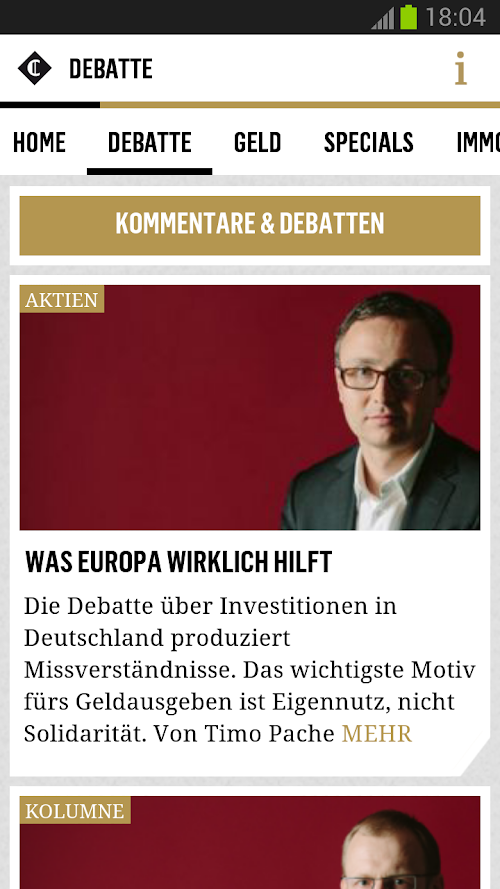 Überraschungsmomente - Wir suchen für unsere Leser unkonventionelle Meinungsbeiträge und Analysen. Auf Capital.de finden Sie globale Perspektive anstelle einer rein deutscher Sicht. Wir denken pluralistisch statt einseitig ideologisch. Und wir wollen Debatten befeuern - indem wir progressiven Denkern Gehör verschaffen statt immer nur den gewohnten Stimmen zuzuhören.Now free for your Android Phone: Capital.de!