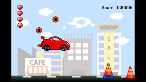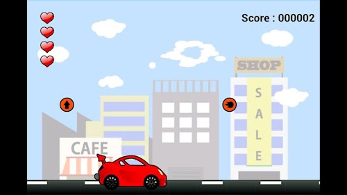 If a car clashes against an obstacle from behind, a life will decrease, and a life is recovered by breaking a balloon.