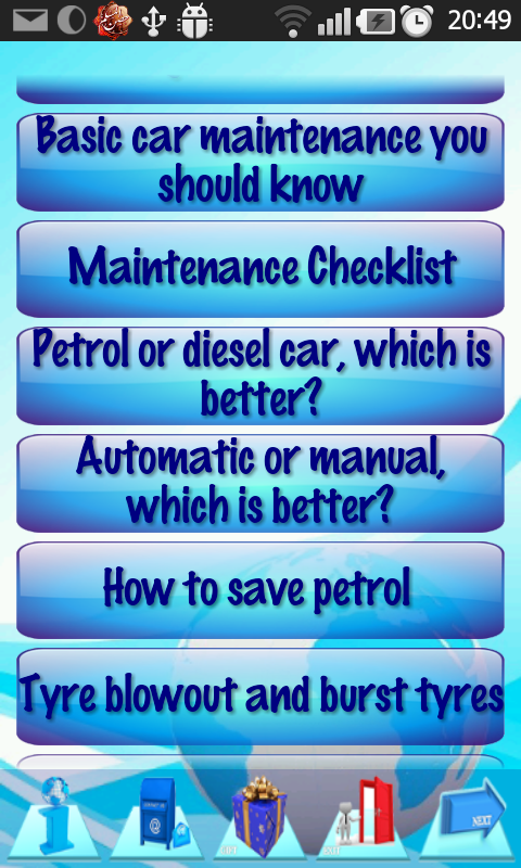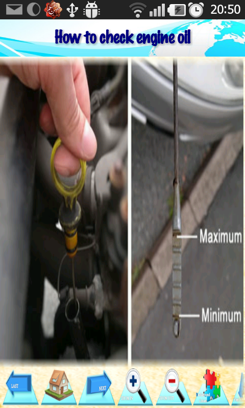 This application contains 6 lessons that teaches hoe to maintain your car by your self to drive safely, economize oil and save a lot of money especially for maintenance and spare parts.