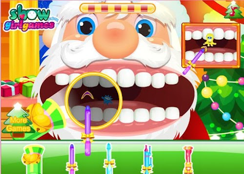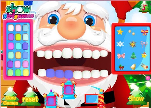 Hello, girls. Christmas is coming. Are you expecting the gifts from Santa Clause? If you have any wishes, please write a letter and tell him. But, Santa Clause is not happy recently, because there is something wrong with his teeth. He has a terrible toothache these days. Christmas is on the way, but he is unable is receive our letters. We are all very sad. Girls, Santa Clause had helped us a lot and sent us so many gifts. So we should do something for him, do you think so? Now, let's help him together. Let’s help him to cure his teeth and decorate his teeth. Let's make him happy.