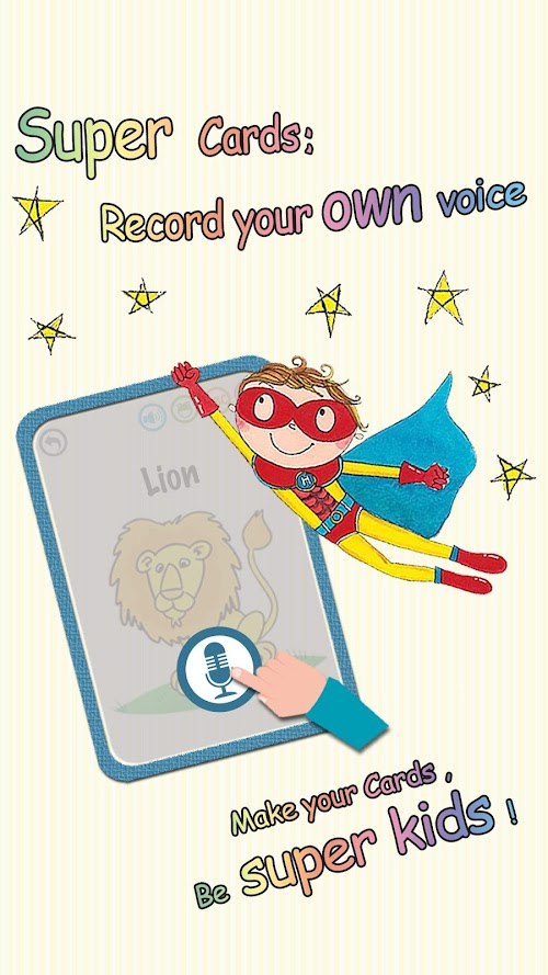 2 You can record voice for each card. It’s very funny and special when kids hear the card with his/your voice.
