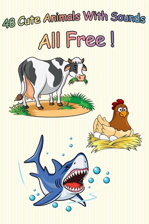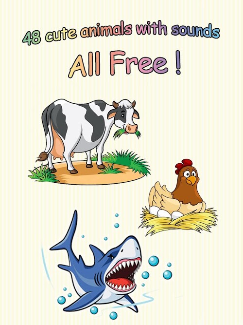 1 Many cute animals with sounds which kid loves. All free !No need purchase again when playing it .