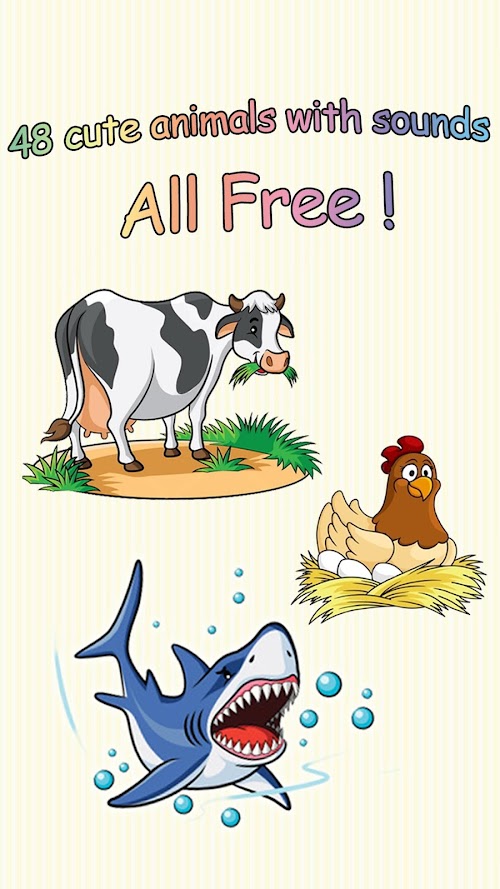 1 Many cute animals with sounds which kid loves. All free !No need purchase again when playing it .