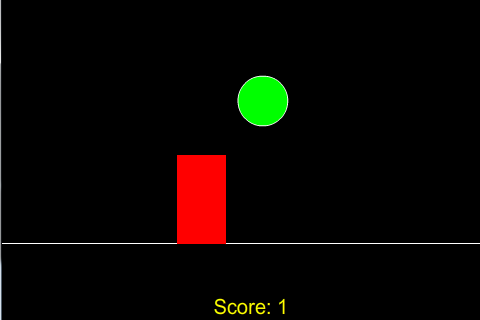 A deceptively simple but addictive game in which you control a green circle that must jump over and duck under the red square. How far can you get before it gets you? Touch the screen to jump.